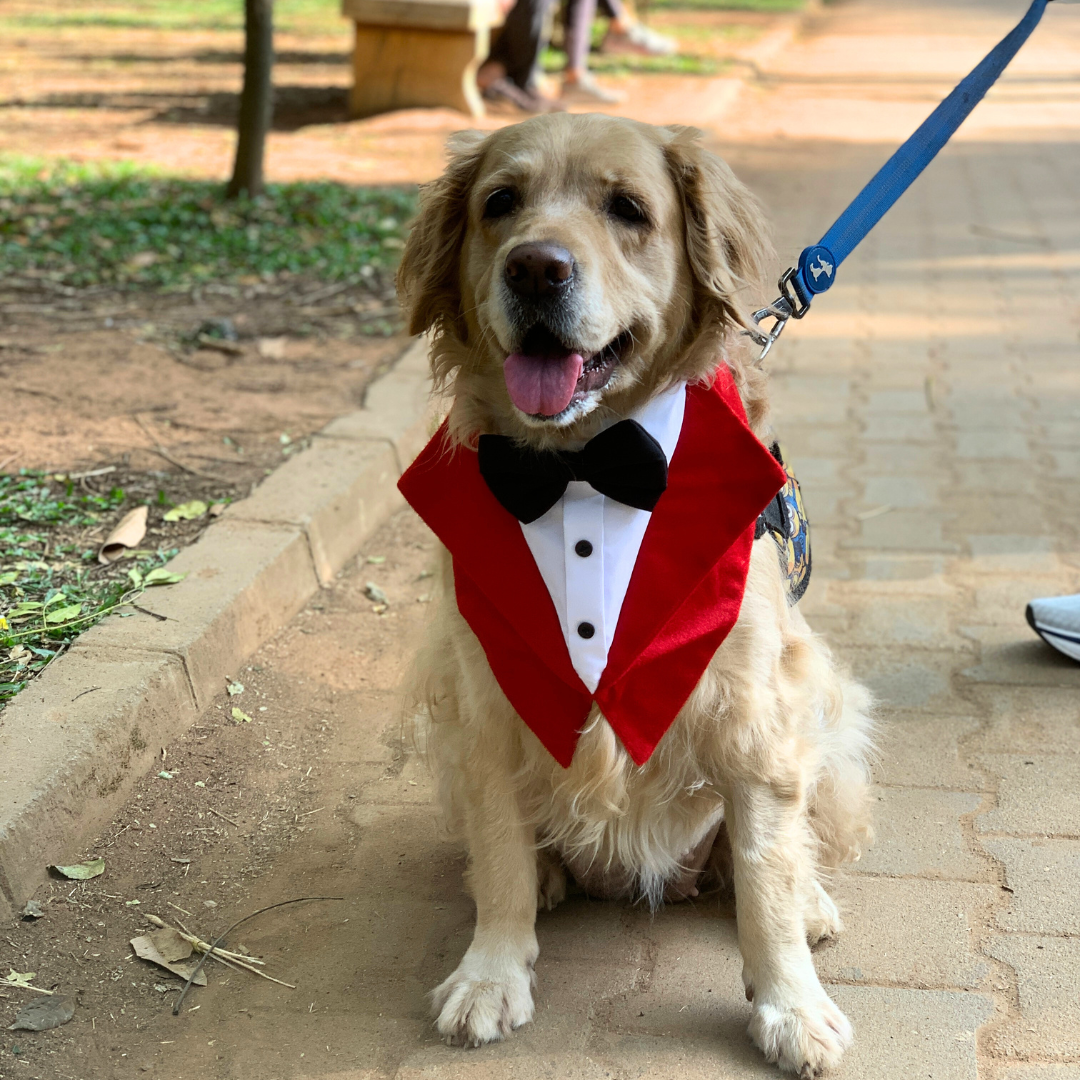 • The Red Velvet Tuxedo Neckwear is a FREE SIZE Product and fits perfect for full grown Labradors and Retrievers.